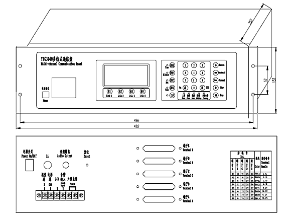 有总线接口和单路输出接口。总线接口可接HY5716B总线电话分机和HY5714B总线电话插孔。单路输出可接入30部HY2712D多线电话分机和HY2714D多线电话插孔。